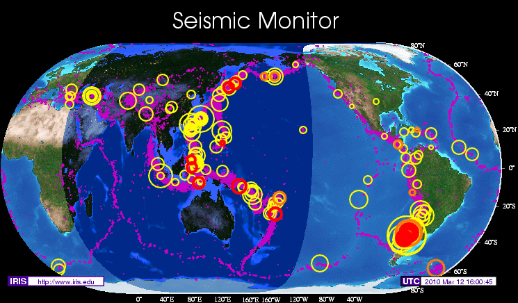 Can you beleive all the eathquakes that are occuring all around the world? My wife has a friend, from Chile, who emailed us this today: “Because of the strong earthquake Concepcion was moved more than 10 feet to the west and Santiago 11 inches. It also affected the Earth axis making the days some microseconds shorter. It makes me feel very small.” Many people having very tough times right now. Really prompts me to be grateful for what I have and that my family is safe. See the below map, showing live earthquakes, at this link: www.iris.edu/seismon